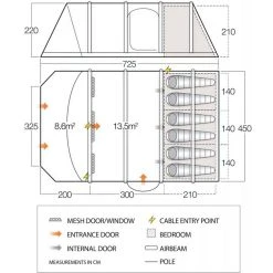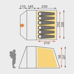 An all-in-on pitch design keeps hassle to a minimum whilst the two flysheet doors offer better versatility and are fitted with further mesh panels for even more effective ventilation.